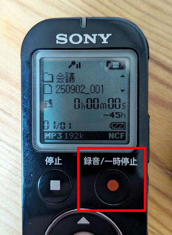 録音が終わったら、「停止」ボタンを一度押してください。録音が止まり、録音データが書き込まれます。