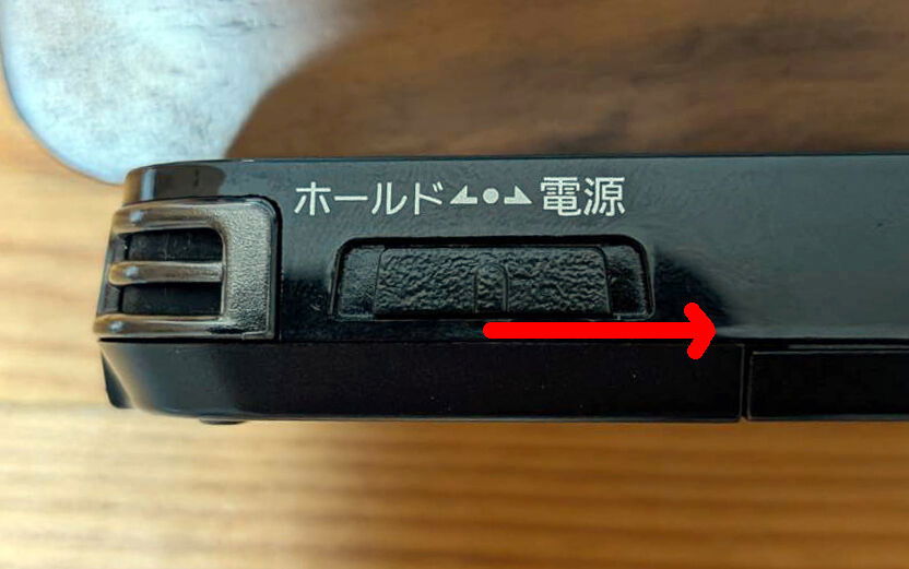 ICレコーダー側面にあるスイッチを電源方向に2~3秒ほど入れ続けます。するとICレコーダーが起動します。